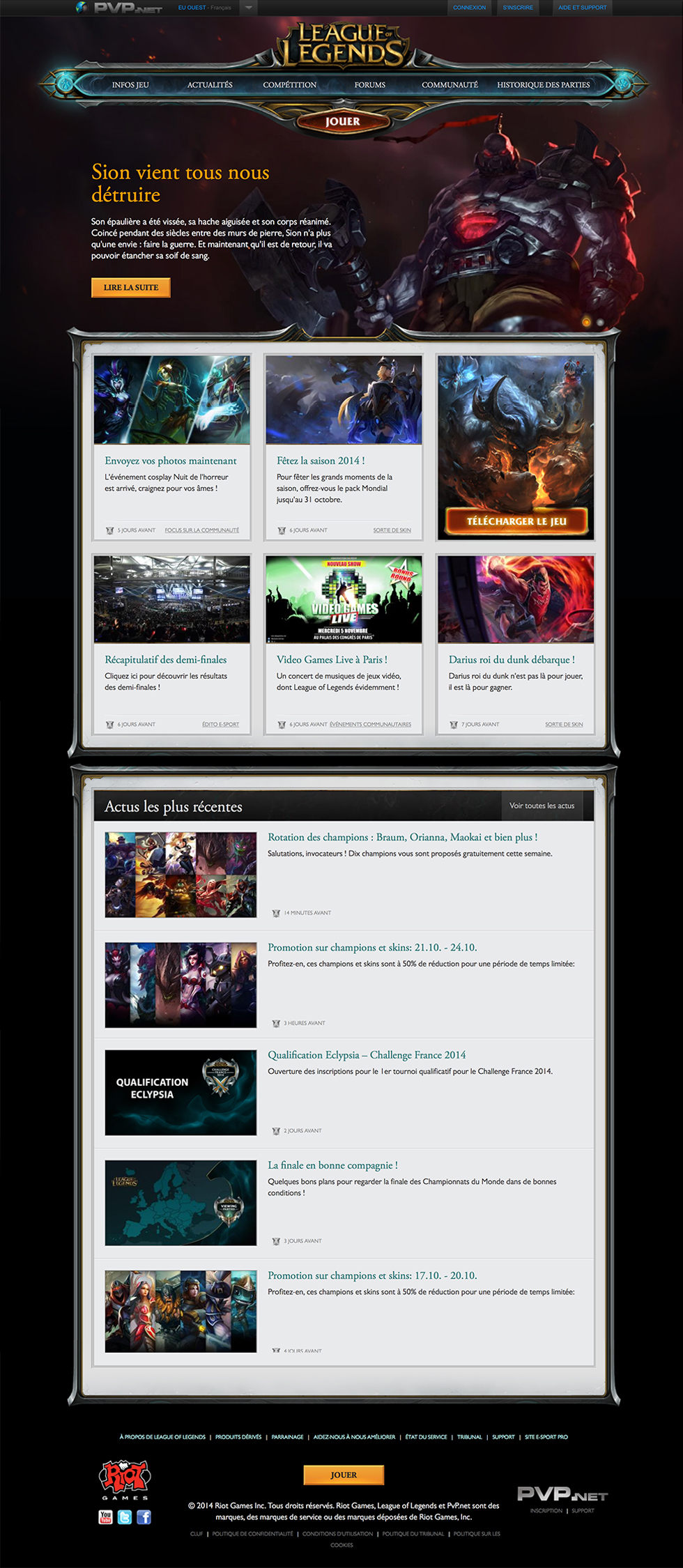 Sur la page d'accueil de League of Legends, le logo est présent, ainsi que
